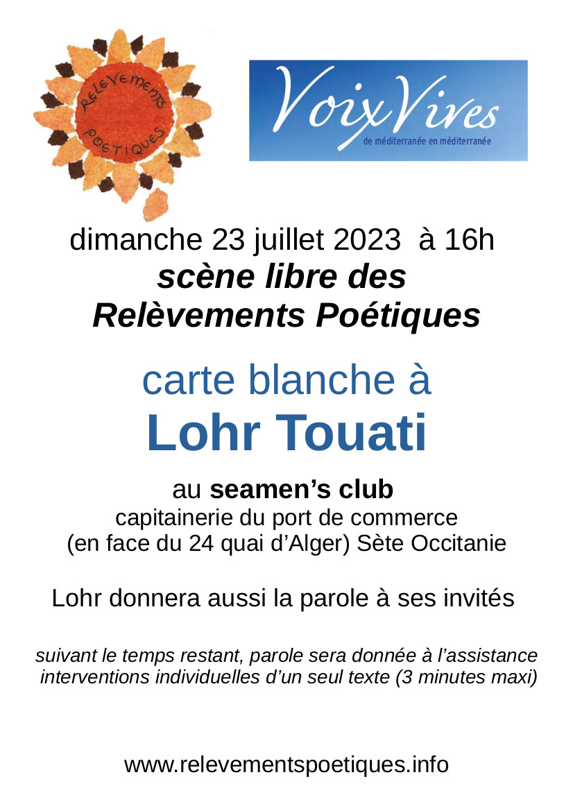 samedi 23 : la scène est d'abord ouverte aux poètes des Relèvements Poétiques le communiqué