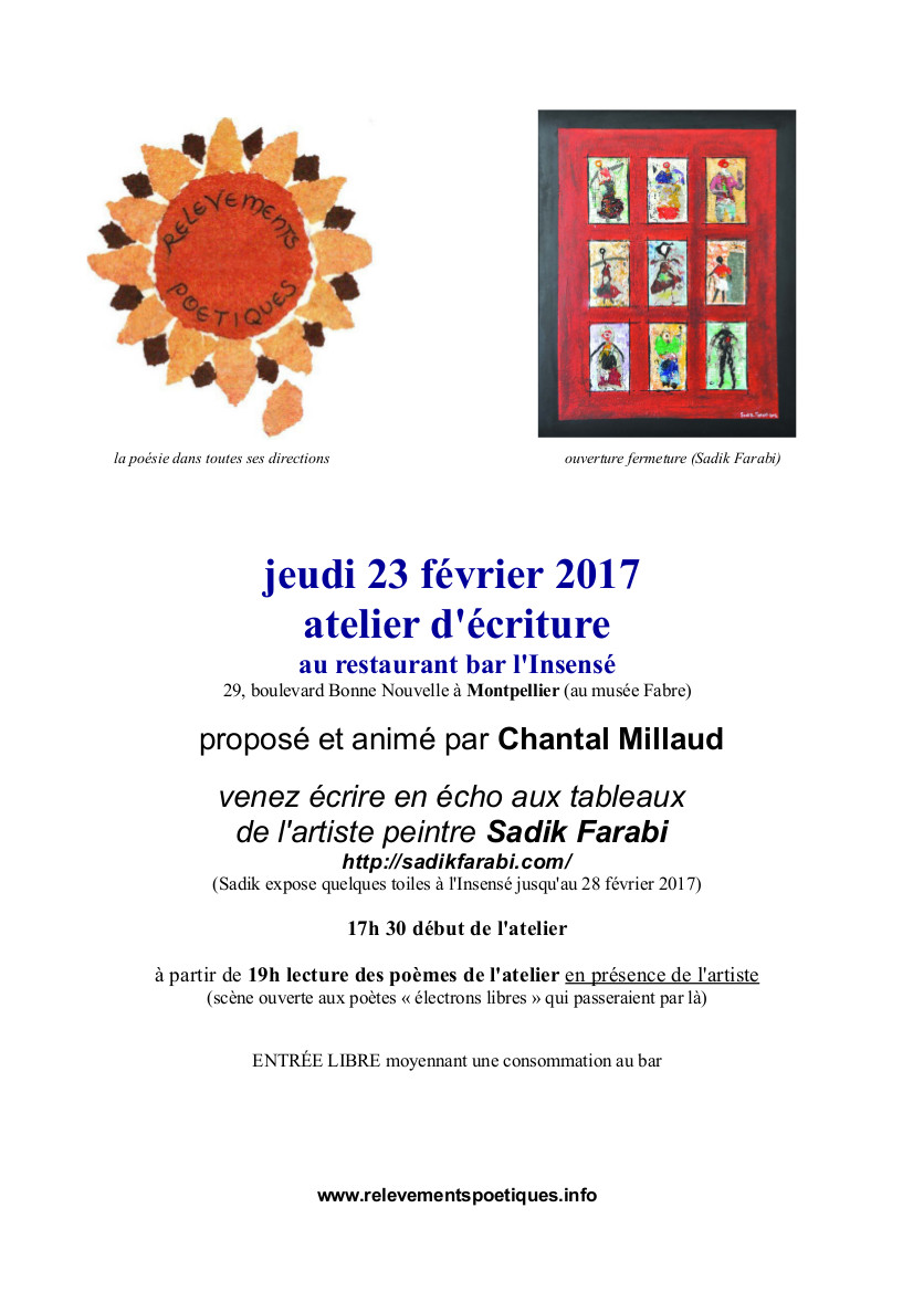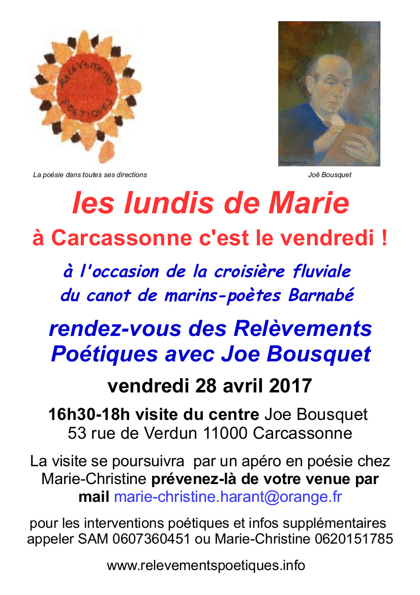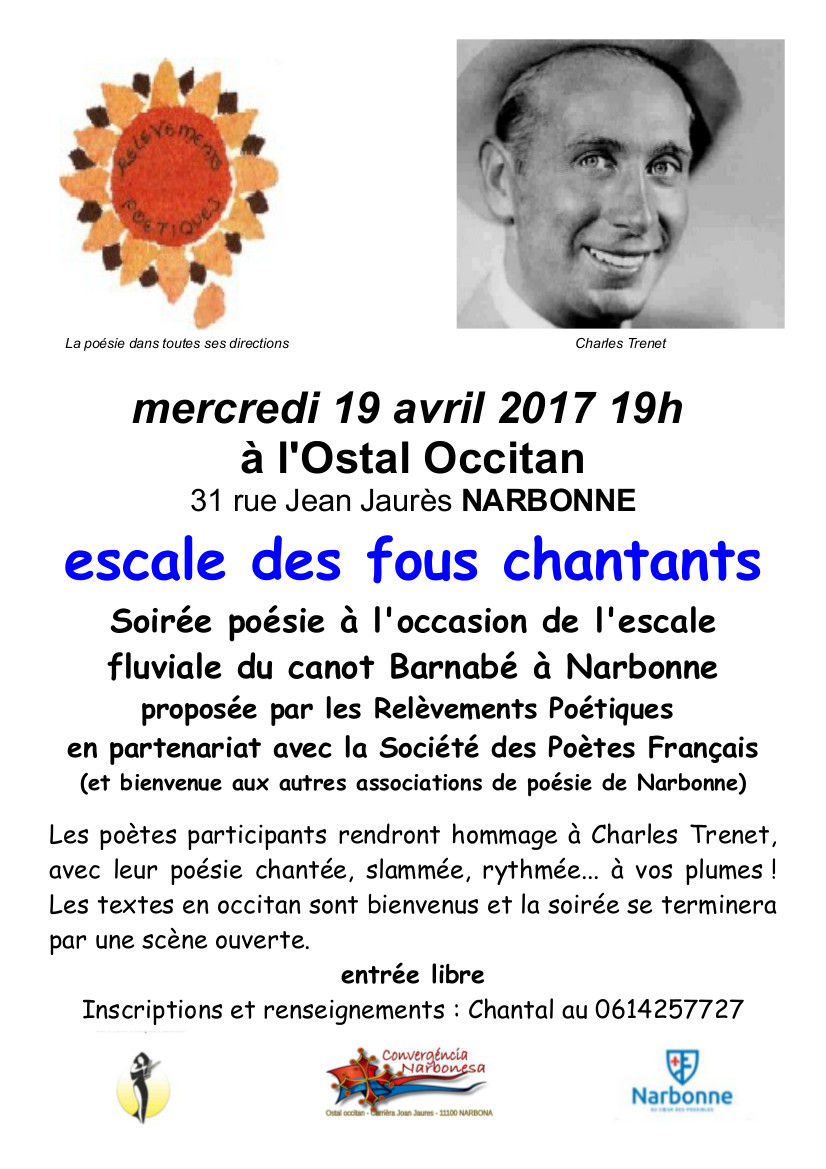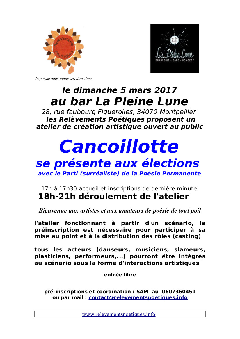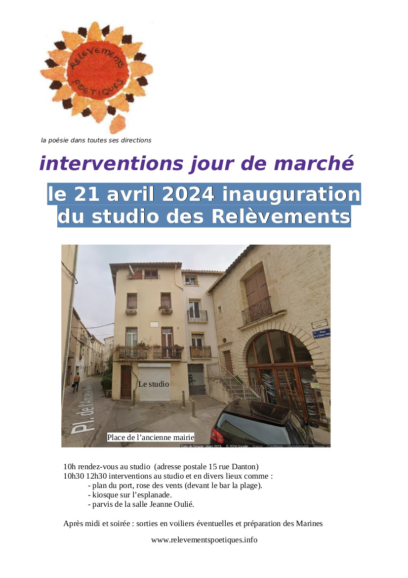 - printemps des poètes à l'espace Georges Brassens à Sète s'inscrire pour intervention sur scène de 15' au 04 99 04 76 26 (accueil de l'espace)