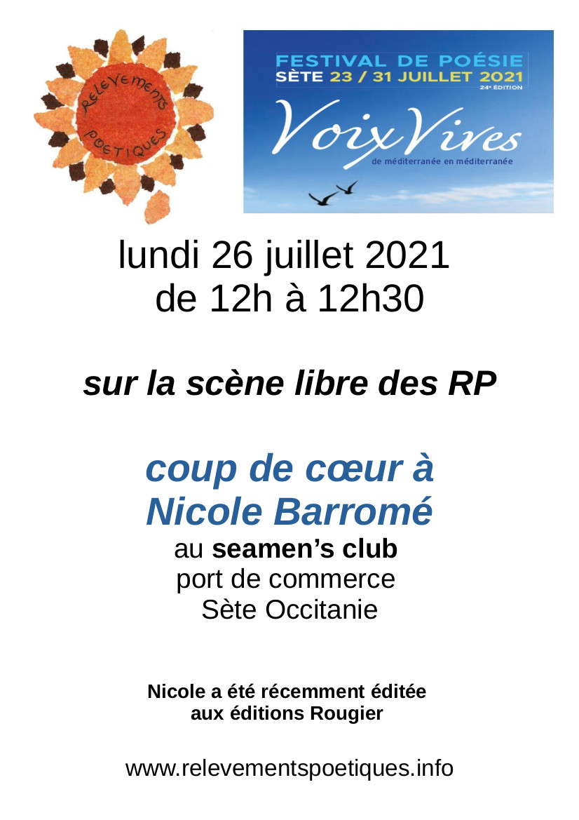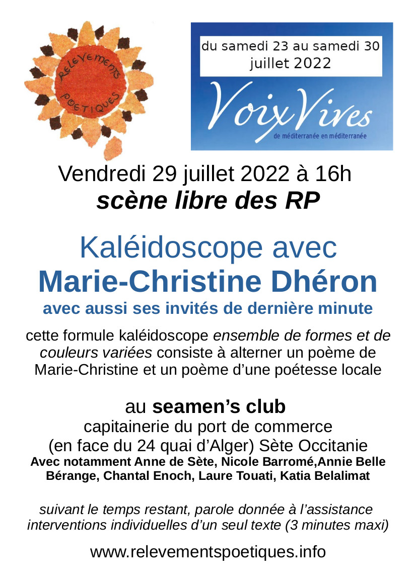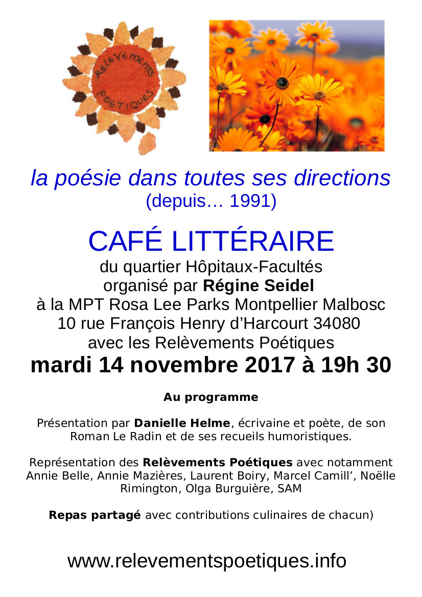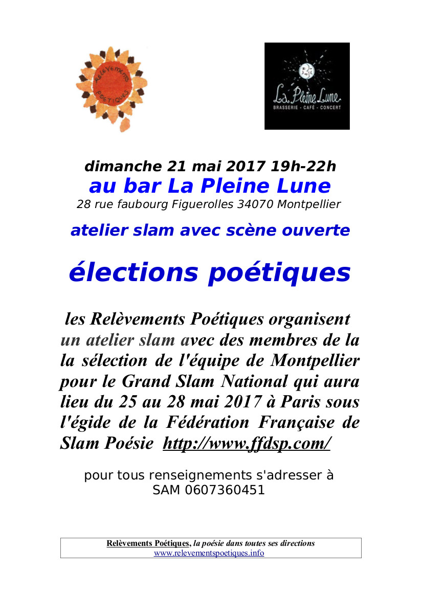 - printemps des poètes à l'espace Georges Brassens à Sète s'inscrire pour intervention sur scène de 15' au 04 99 04 76 26 (accueil de l'espace)