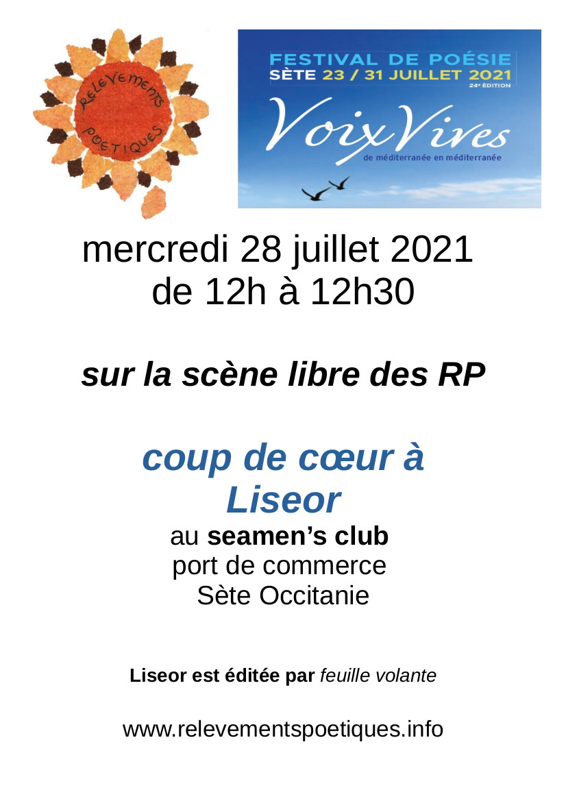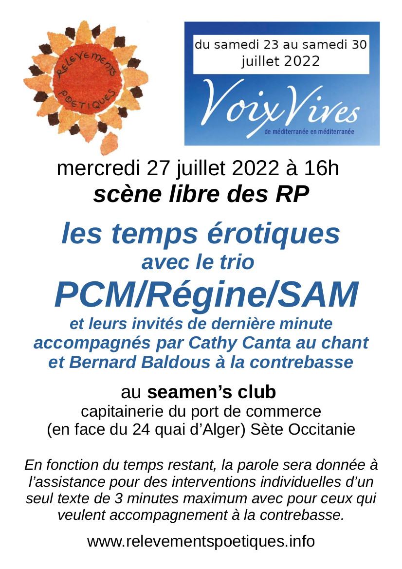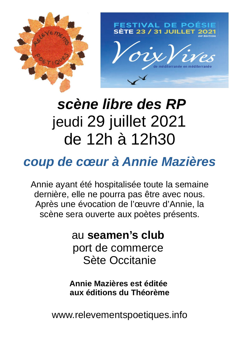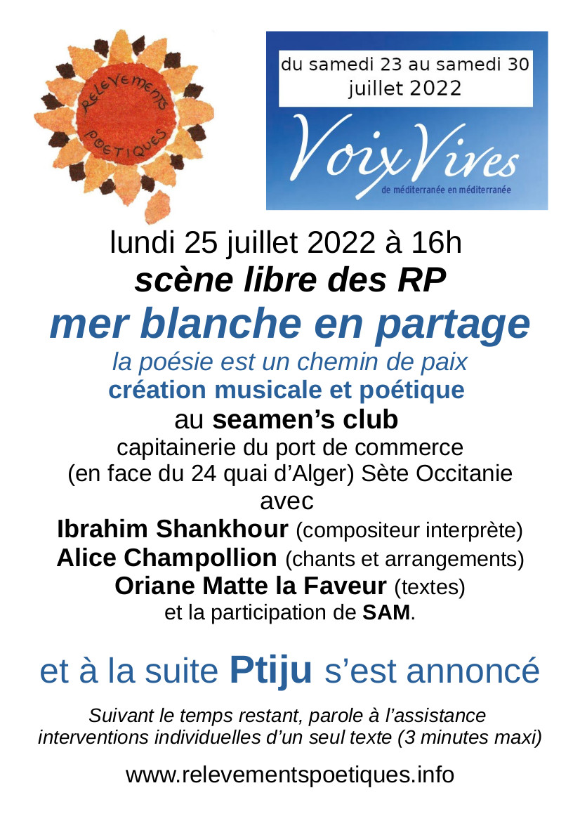 Scènes libres des RP aux Voix Vives 2025 du 19 juillet au 26 juillet 2025 au seamen's club de 16h à 17h30.