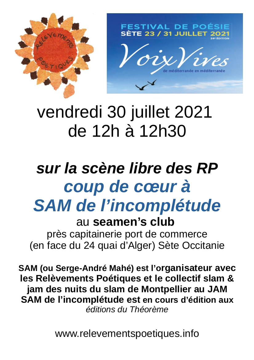 vendredi 14 octobre 2022 20h scène SLAM poésie à Mèze organisée par la mairie de Mèze avec la collaboration des RP, venez nombreux !
