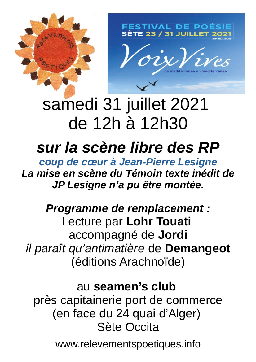 samedi 23 : la scène est d'abord ouverte aux poètes des Relèvements Poétiques le communiqué