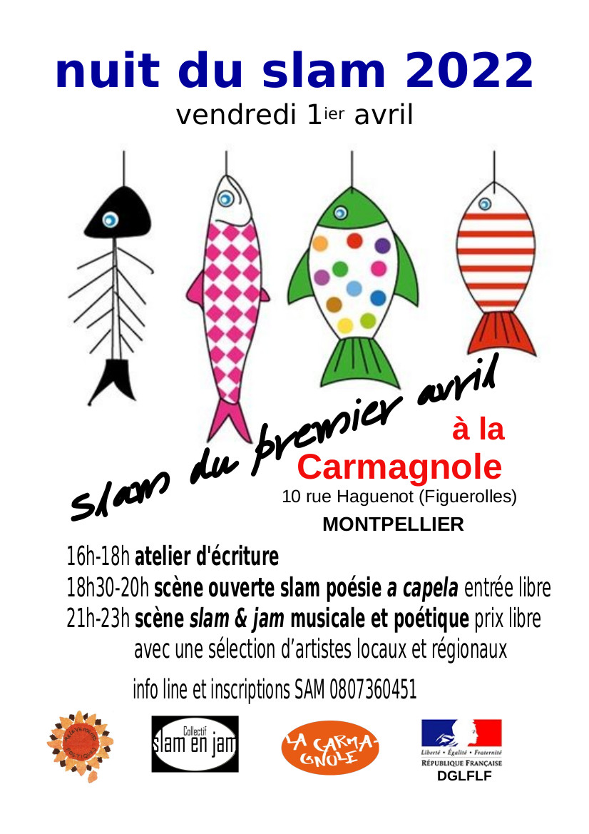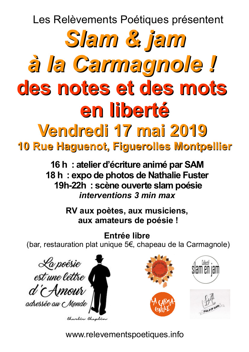 Et avec le collectif Slam En Jam qui organise depuis 3 ans avec les Relèvements Poétiques les nuits du slam sur Montpellier