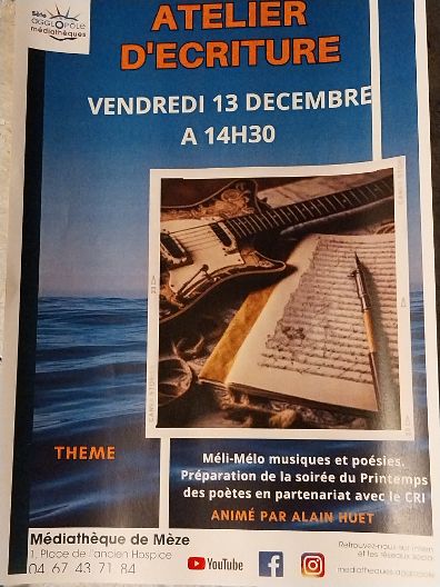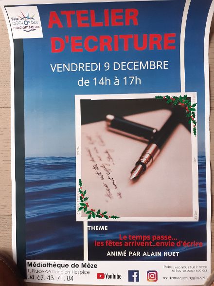 atelier écriture à la médiathèque de Mèze vendredi 9 décembre 2022 14h-17h