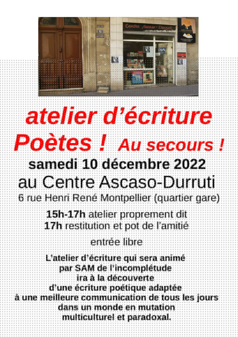 atelier écriture au CAD samedi 10 décembre 2022 15h Montpellier Occitanie