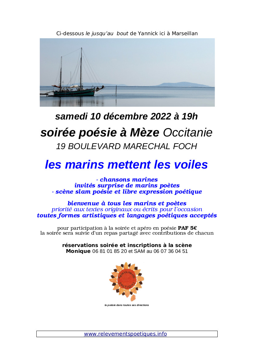 soirée poésie samedi 10 décembre 2022 19h Mèze Occitanie