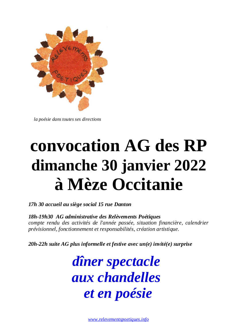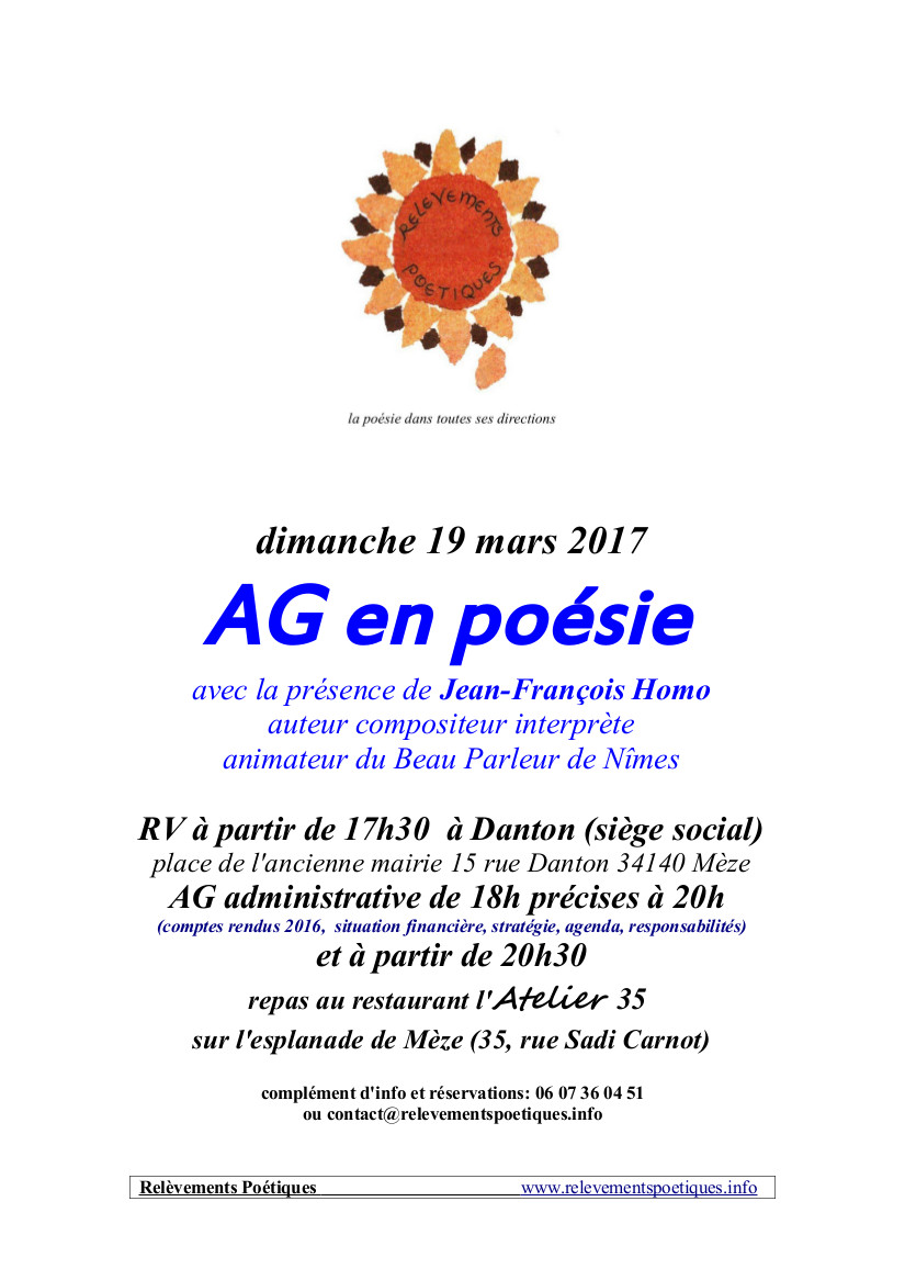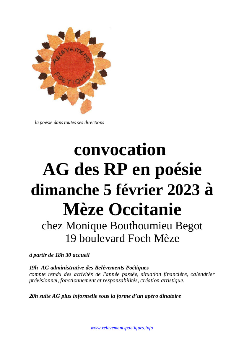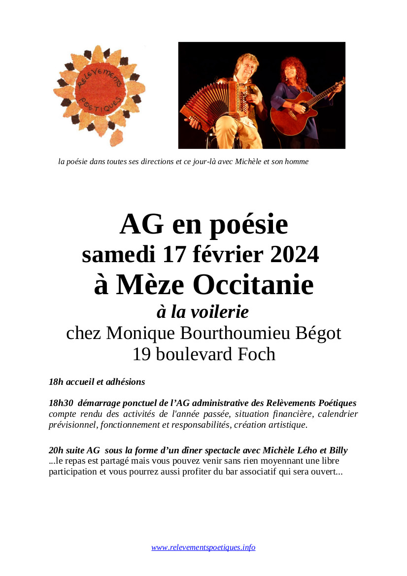 samedi premier févier à Mèze Occitanie AG des Relèvements en poésie