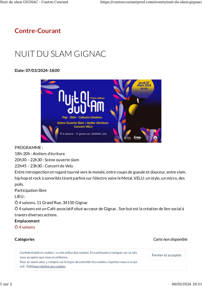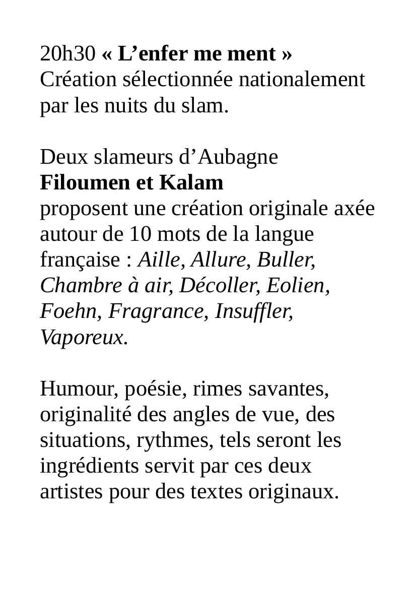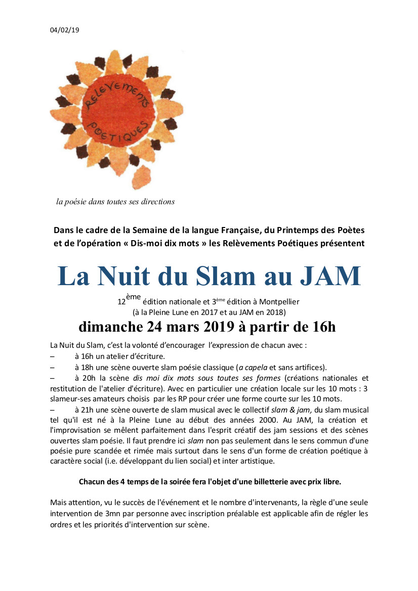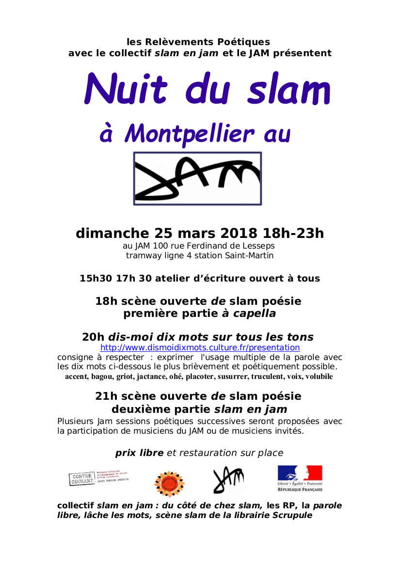 jeudi 7 mars 2024 la nuit du slam mais pas par les Relèvements !