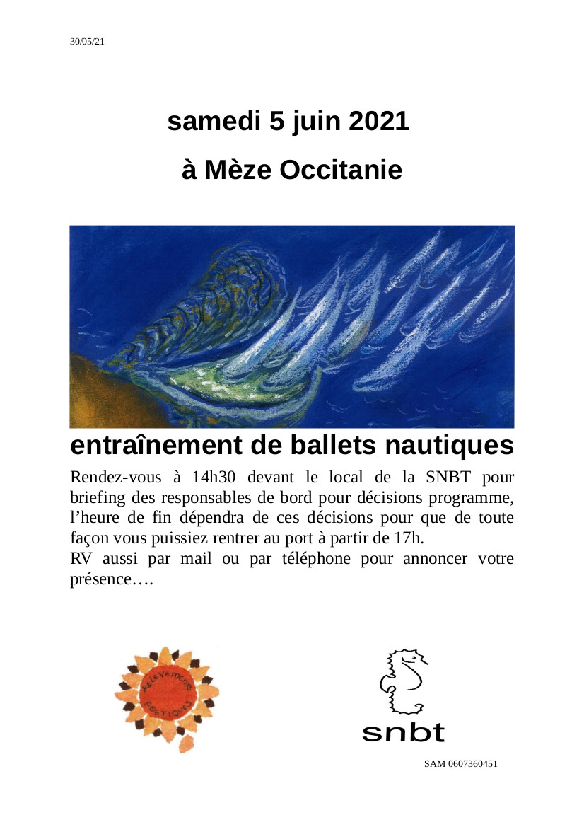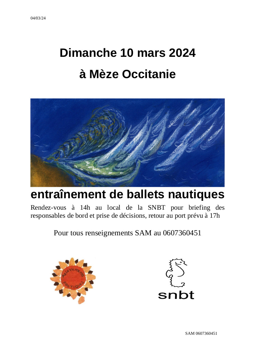 - entraînement de ballets nautiques avec un rendez-vous principal le dimanche.