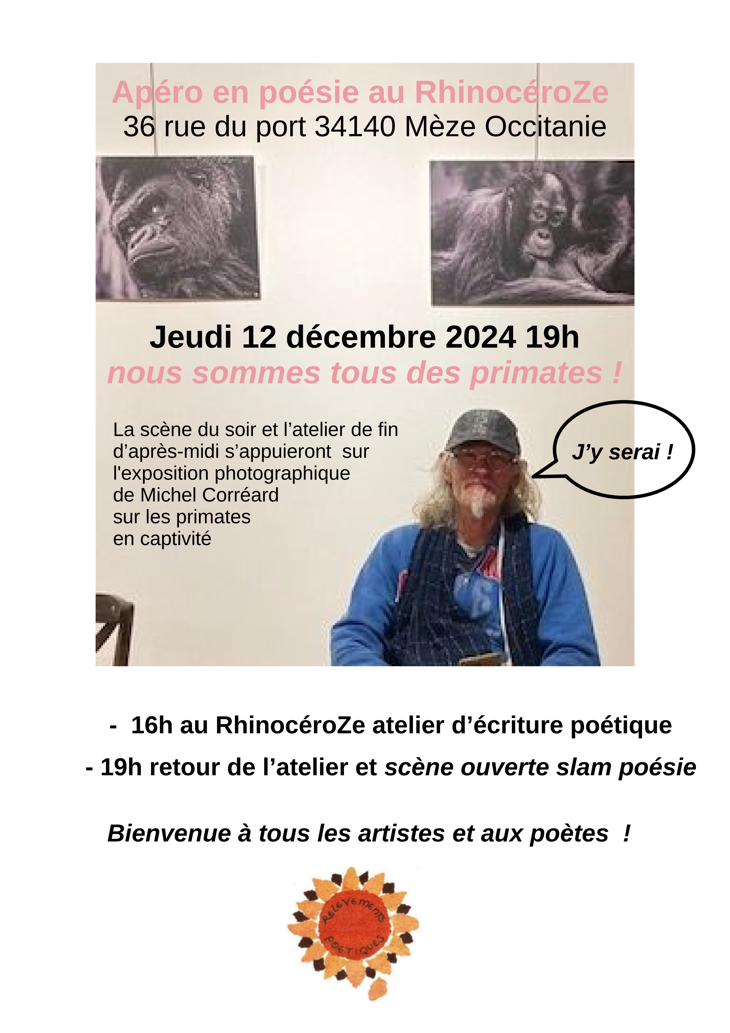 jeudi 12 décembre 2024 Nous sommes tous des Primates : soirée poétique au RhinocéroZe Mèze Occitanie