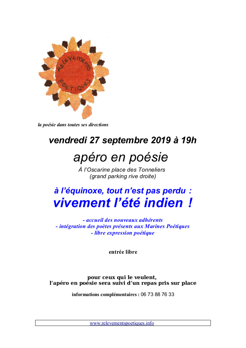 Envoyez vos propres reportages ou remarques pour publication à admin@relevementspoetiques.info