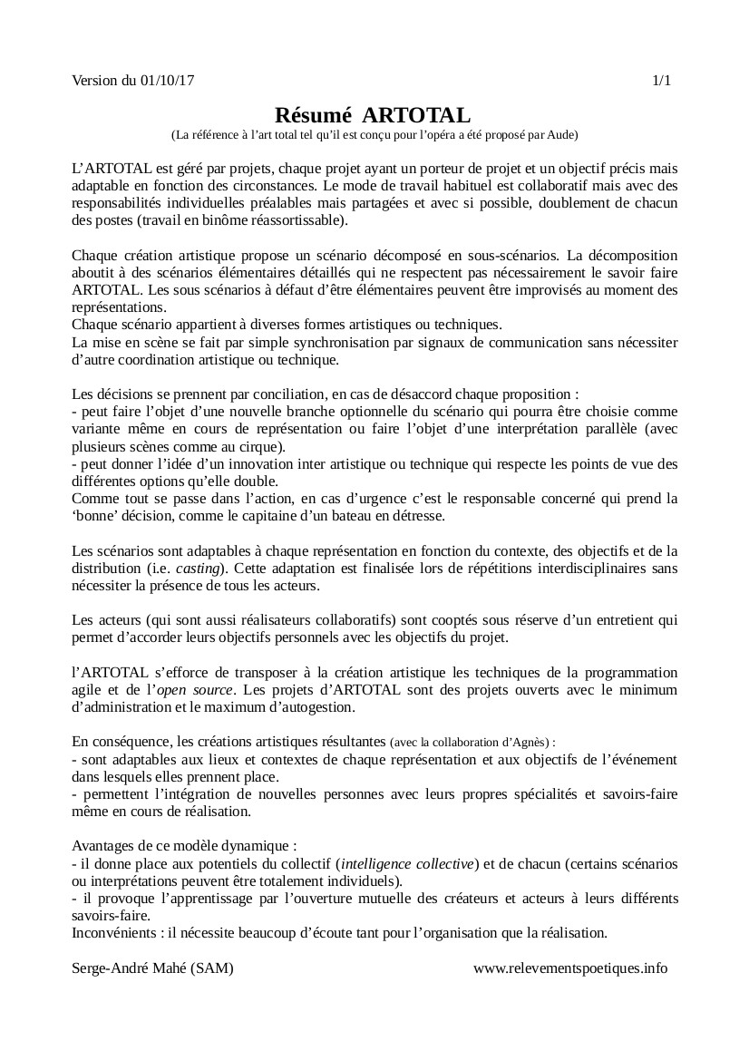 SAM au 0607360451 est le responsable de la mise en scène collaborative d'ARTOTAL, venez vous joindre à l'équipe !