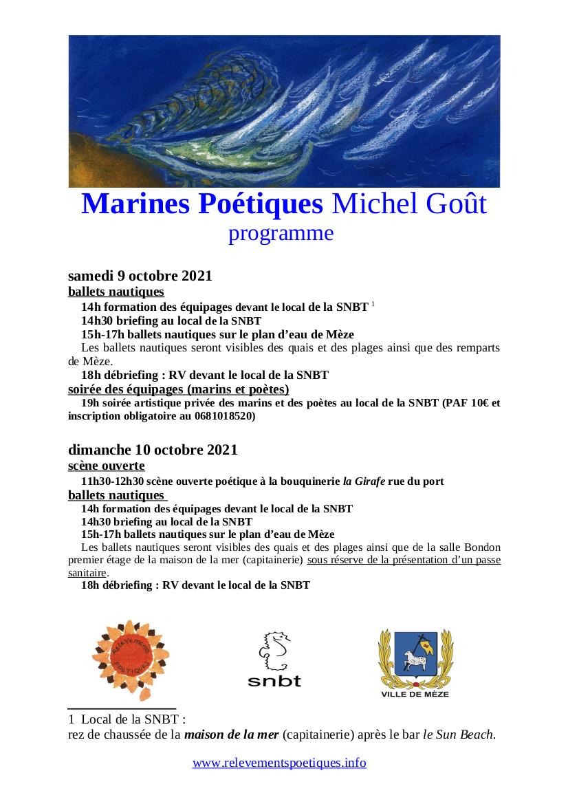 Marines Poétiques 7 & 8 octobre 2023 à Mèze Occitanie