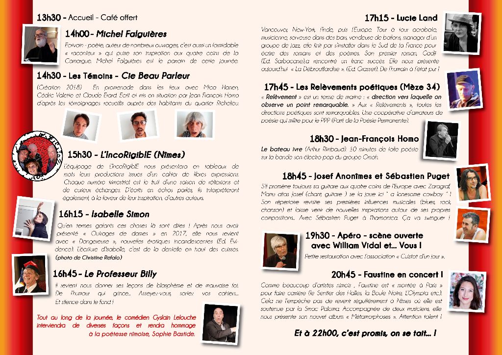 Marines Poétiques avec mises en scènes et scènes ouvertes : le programme.